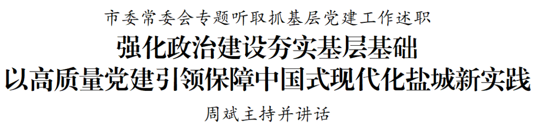 会议指出,明年是“十五五”规划开局之年,全市各级党组织要深入学习贯彻习近平总书记关于党的建设的重要思想和对江苏工作重要讲话、在盐城考察时重要指示精神,学习好贯彻好党的二十届四中全会精神,用好新四军历史“生动教材”,发挥“四色”文化资源优势,完善班子运行工作规则、“三重一大”集体研究讨论等制度机制,突出抓好基层党组织工作条例贯彻落实,持续深化整治群众身边不正之风和腐败问题,筑牢绝对忠诚的思想根基。要始终把党的建设与经济社会发展同谋划、同推进,按照市委八届十一次全会部署,坚定不移向海图强、向绿而兴、向新转型,加快建设“国际湿地、沿海绿城、江淮门户”,努力为全国全省发展大局作出更大贡献。要树立大抓基层的鲜明导向,坚持“精准化”配强领导班子、“多领域”夯实基层基础、“全方位”锻造过硬队伍、“一盘棋”推动各领域党建,开展好村(社区)“两委”、县镇领导班子换届工作,深化“干部联村、一村一策”促进乡村振兴,持续实施强村富民帮促行动。要坚决扛起主责抓好主业,拧紧党委(党组)书记、班子成员以及党建工作领导小组成员责任链条,整治形式主义为基层减负,推动各类资源、人才向基层汇聚,以高度的政治自觉把基层基础夯实筑牢。