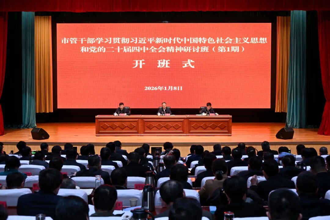 根据中央和省委统一部署,1月8日,市管干部学习贯彻习近平新时代中国特色社会主义思想和党的二十届四中全会精神研讨班(第1期)在市委党校开班。市委书记周斌出席开班式并讲话。他强调,要坚持不懈深学细悟党的二十届四中全会精神,进一步增强政治自觉、思想自觉和行动自觉,更好落实中央决策部署和省委工作要求,把学习贯彻走深走实,奋力谱写好“强富美高”新盐城现代化建设新篇章。市长严汉平主持开班式。