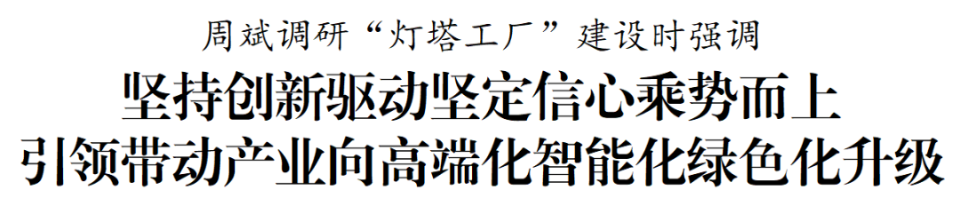 调研中,周斌与市相关部门和板块负责同志深入交流,探讨如何进一步放大“灯塔工厂”效应、赋能全市新型工业化发展。他强调,要坚持创新驱动,以“灯塔工厂”为标杆,充分激发企业内在能动性,鼓励支持更多企业融通创新,加强关键核心技术攻关,加快工业互联网规模化应用,打造更多智能车间和智能工厂。要优化产业生态,围绕主导产业和战略性新兴产业,在政策支持、要素保障、场景开放、人才引育等方面提供更优服务,全力支持各类企业在盐发展壮大,凝聚起推进中国式现代化盐城新实践的强大合力。