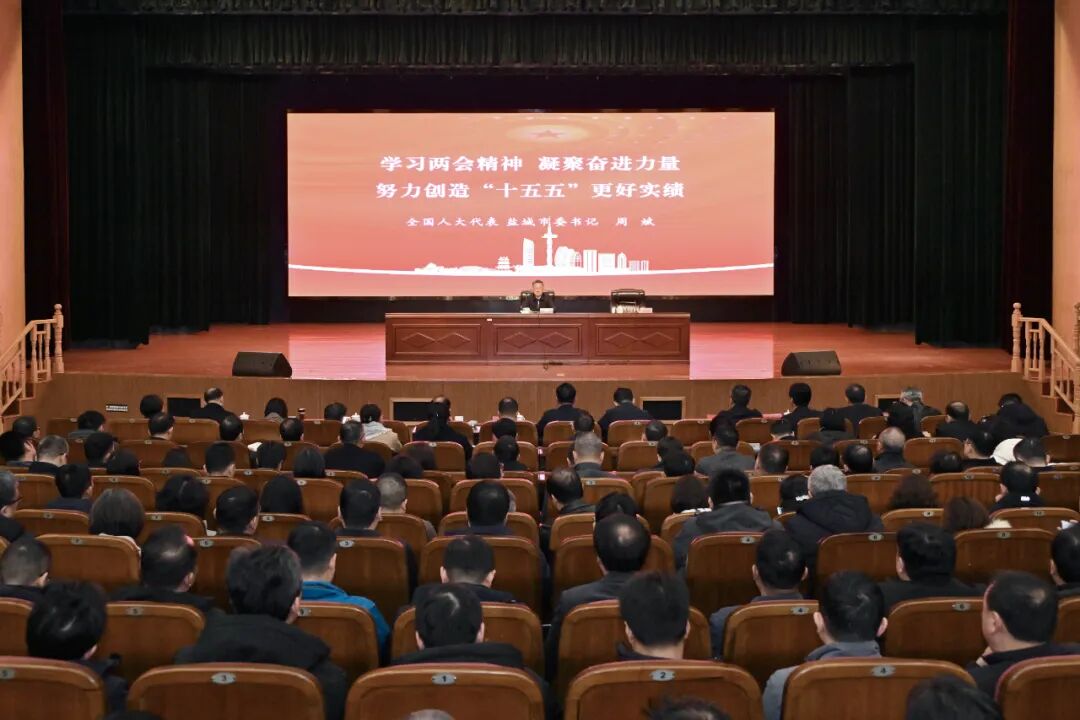 随后,周斌围绕学习贯彻习近平总书记参加江苏代表团审议时的重要讲话精神,结合盐城发展实际,通过一系列数据、案例,与大家深入交流。他说,深刻理解把握总书记重要讲话精神,关键要与深入贯彻总书记对江苏工作重要讲话精神、在盐城考察时重要指示精神结合起来,融会贯通,一体抓好学习宣传贯彻,紧扣“海”“绿”“新”三个字持续发力,在研究新情况、解决新问题上下更大功夫,因地制宜发展新质生产力,筑牢产业硬底盘,激活消费新引擎,在粮食保供、生态保护、能源保障等领域扛起盐城担当,把保障和改善民生摆在更加重要的位置,坚定不移全面从严治党,以高质量党建引领高质量发展,真正干出经得起时间、群众和历史检验的实绩。